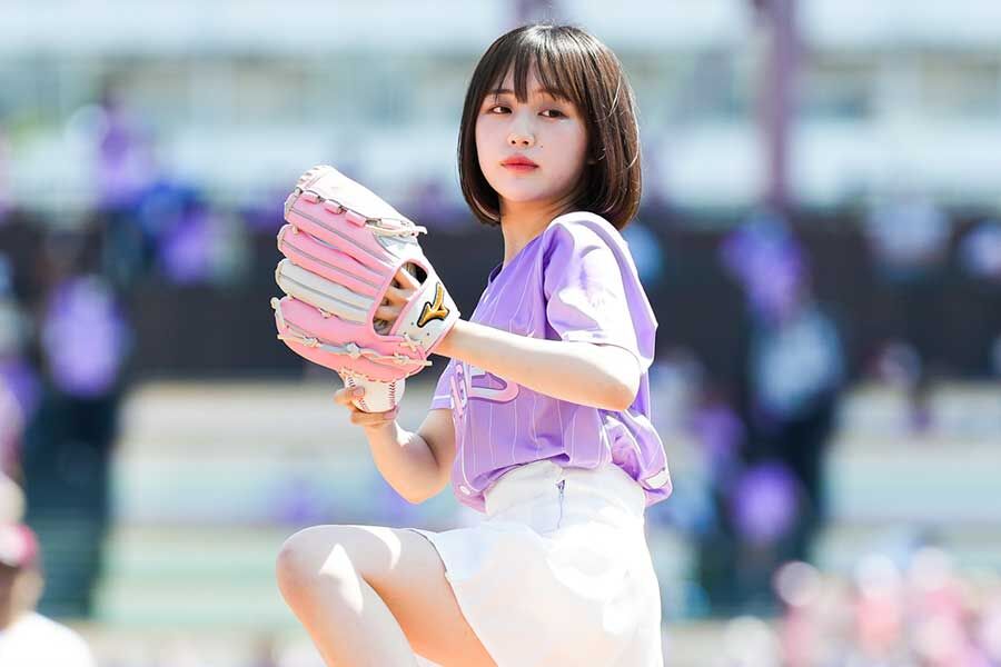 【なえなの】21歳、始球式が「めちゃくちゃ可愛い」清楚な白ミニスカがふわり